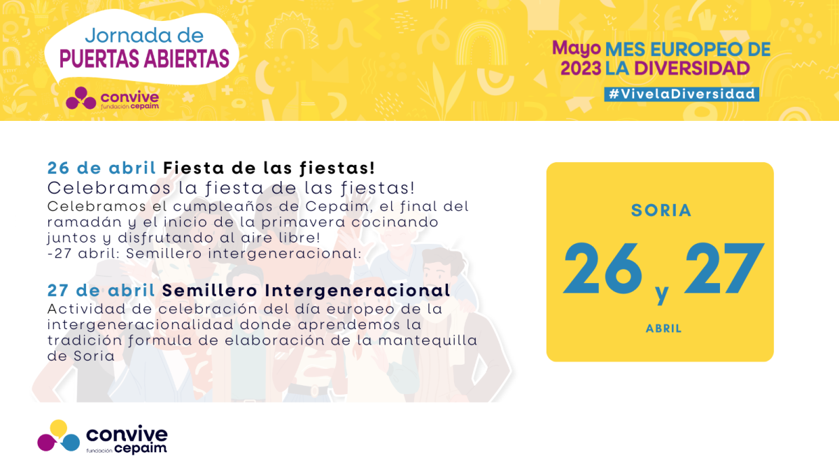 Desde el 6 hasta el 12 de Mayo 2023, en CONVIVE Fundación Cepaim en Mérida, realizaremos diferentes actividades en el marco de la semana de puertas abiertas de la entidad.