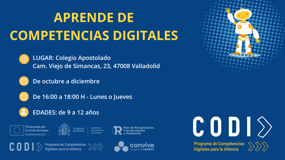 Se trata de un curso de competencias digitales que tendrá lugar en el Colegio Apostolado de Valladolid durante el período de dos meses durante noviembre y diciembre de 2025.
