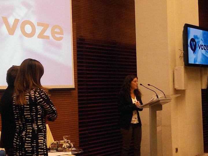 VOZE. Presentan la medida “Formación y colaboración con personas migrantes y refugiadas”. Vozé es una empresa de traducción e interpretación que imparte, de forma gratuita, talleres presenciales y una formación online, en interpretación telefónica y mediación intercultural. Esto permite por un lado prestar una mejor atención a las personas con las que trabajan y por otro lado ofrecer una nueva vía de inserción laboral a personas migrantes y refugiadas. Un 80% de las personas que superan el curso pasan a formar parte de su equipo de intérpretes. Recogió el reconocimiento Adriana Jaime, socia fundadora.